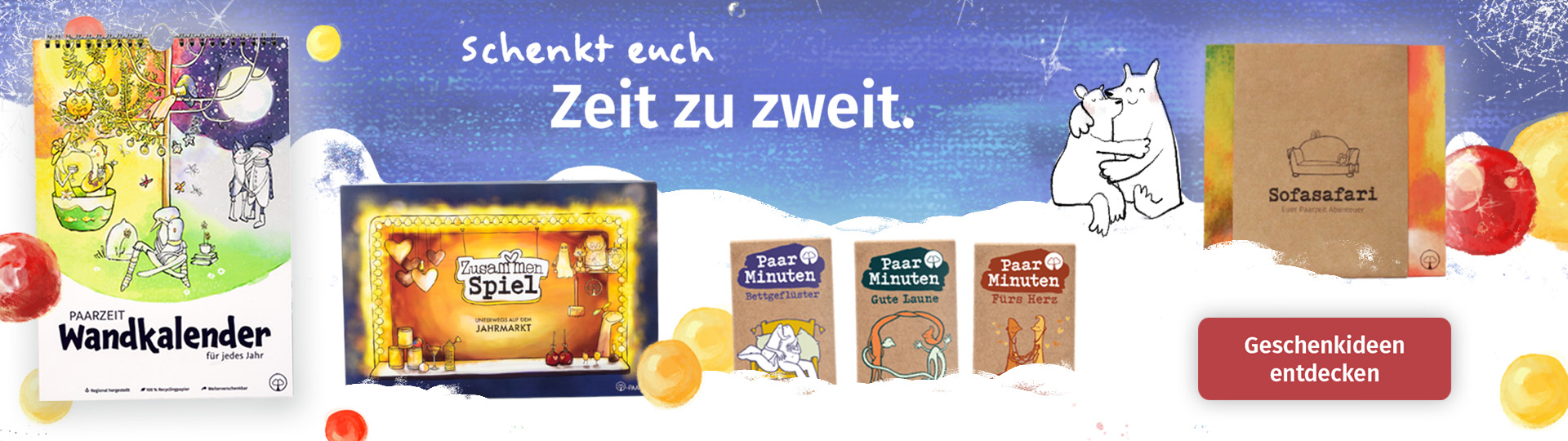 Begonnen hat alles 2019 in der Nähe von Osnabrück, als unser Gründer Alex zum zweiten Mal Papa wurde und sich die Gespräche mit seiner Frau fast ausschließlich um den Alltag als Eltern drehten. Aus der Sehnsucht nach Nähe und Verbundenheit entstand die Erstausgabe des Paarzeit Adventskalenders, von dem es inzwischen 5 Editionen gibt.