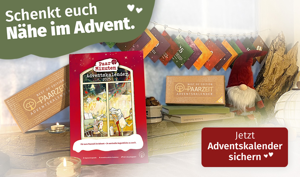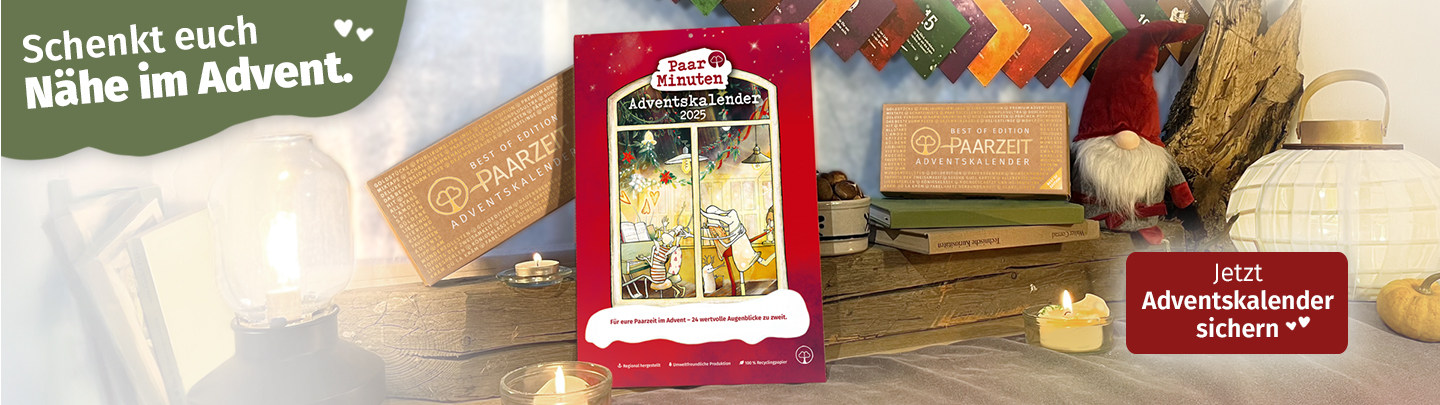 Begonnen hat alles 2019 in der Nähe von Osnabrück, als unser Gründer Alex zum zweiten Mal Papa wurde und sich die Gespräche mit seiner Frau fast ausschließlich um den Alltag als Eltern drehten. Aus der Sehnsucht nach Nähe und Verbundenheit entstand die Erstausgabe des Paarzeit Adventskalenders, von dem es inzwischen 5 Editionen gibt.