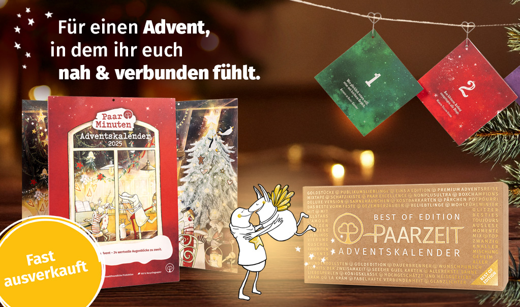 Begonnen hat alles 2019 in der Nähe von Osnabrück, als unser Gründer Alex zum zweiten Mal Papa wurde und sich die Gespräche mit seiner Frau fast ausschließlich um den Alltag als Eltern drehten. Aus der Sehnsucht nach Nähe und Verbundenheit entstand die Erstausgabe des Paarzeit Adventskalenders, von dem es inzwischen 5 Editionen gibt.