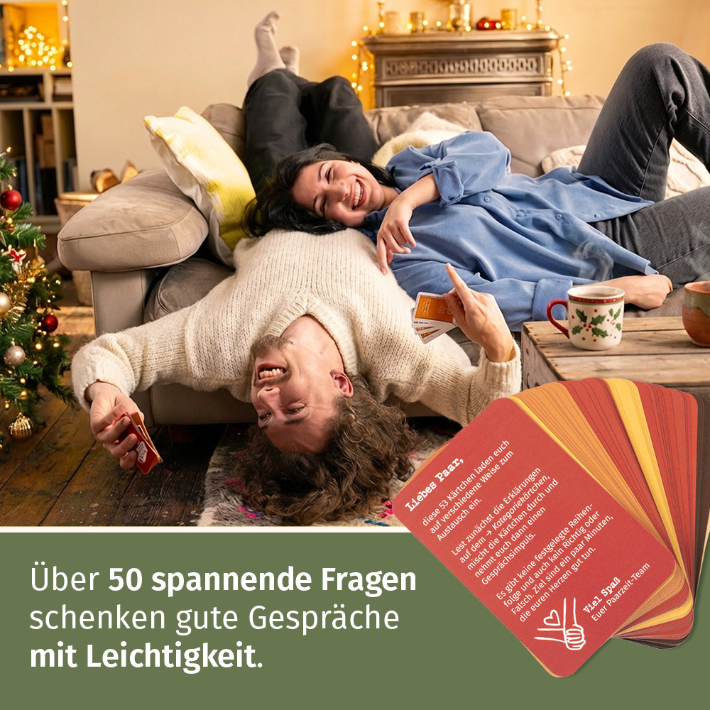 Inhaltlich erwarten euch spielerische Gesprächsimpulse zu ganz unterschiedlichen fröhlichen Themen, die eure Herzen wärmen. Über die unterschiedlichen Antwortformate kommt ihr mit Leichtigkeit ins Gespräch.