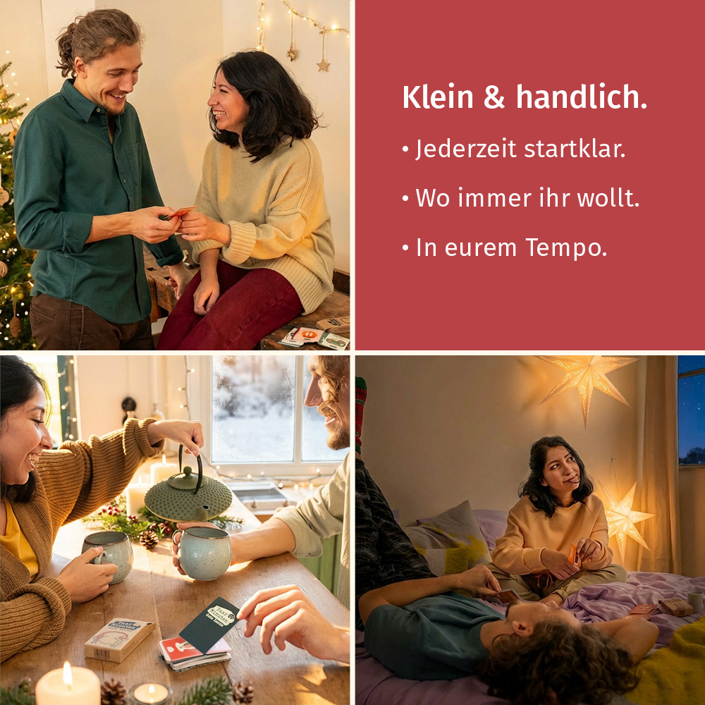DANKE für die schnelle Lieferung! Ich habe 2 Sets gekauft als Geschenke für meine Tochter&Partner und Nichte&Partner schonmal zu Weihnachten. Natürlich habe ich mir vorab die Karten schon angeschaut😉 So hübsch gemacht, wertig und um gemeinsame wertvolle Zeit zu verbringen 💕 Auf jeden Fall werde ich wieder bei Euch bestellen. Vielen herzlichen Dank 😊